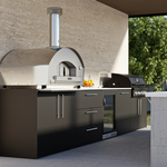 Compatible with Fontana’s top-selling ovens—including the Maestro 60 Gas Oven, Margherita Wood Oven, and Firenze Hybrid Oven—the Elysia line supports a wide variety of layouts with fridge modules, storage, open shelves, soft-close drawers, and even Lynx grill integration.