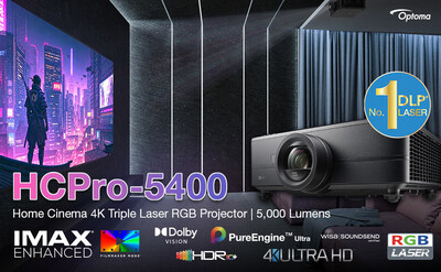 FREMONT, Calif., April 15, 2026 /PRNewswire/ — Optoma, the No. 1 DLP® laser home projector brand in the Americas,* today introduced the HCPro-5400 professional home cinema triple RGB laser projector bringing the immersive movie experience home. Designed to be the industry’s first DLP laser projector featuring 5,000 lumens** of brightness and cutting-edge 4K UHD visuals with certifications for IMAX® Enhanced, Dolby® Vision, HDR10+, FILMMAKER MODE™ and WiSA SoundSend, the powerhouse HCPro-5400 provides unparalleled, lifelike imagery for enjoying your favorite movies, TV shows and live sports up to a 300″ image for a superior cinematic experience at home.