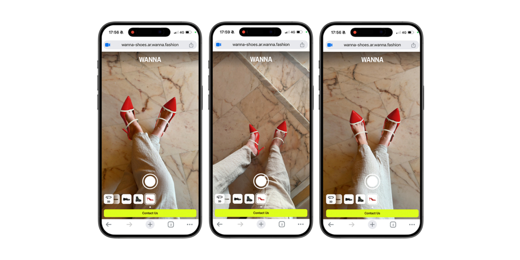 The VTO experience supports a variety of high-heeled shoe categories, including pumps, heeled sandals, ankle boots, and high-heeled boots. It allows users to assess heel height with precision, showcasing options ranging from 7 cm for standard pumps to 9 cm for closed-toe heels. To ensure optimal accuracy, WANNA recommends trying on the heels either barefoot or with socks. The experience also offers multiple viewing angles — including side view, shoe sole, top-down view (as when sitting), and rear view — enabling users to evaluate style and proportions from every angle.