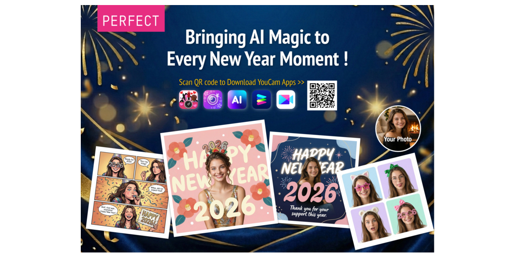 NEW YORK–(BUSINESS WIRE)–Perfect Corp. (NYSE: PERF), the leading artificial intelligence (AI) and augmented reality (AR) beauty and fashion tech solutions provider, announced the launch of an interactive suite of 2026 New Year content across the YouCam app series, including YouCam Makeup, YouCam Perfect, YouCam AI Pro, YouCam Enhance and YouCam Video. With over 1.1 billion total downloads, the YouCam apps are transforming how users celebrate the holidays, offering new ways to visualize their New Year’s resolutions and create viral-ready social content using the latest Generative AI.